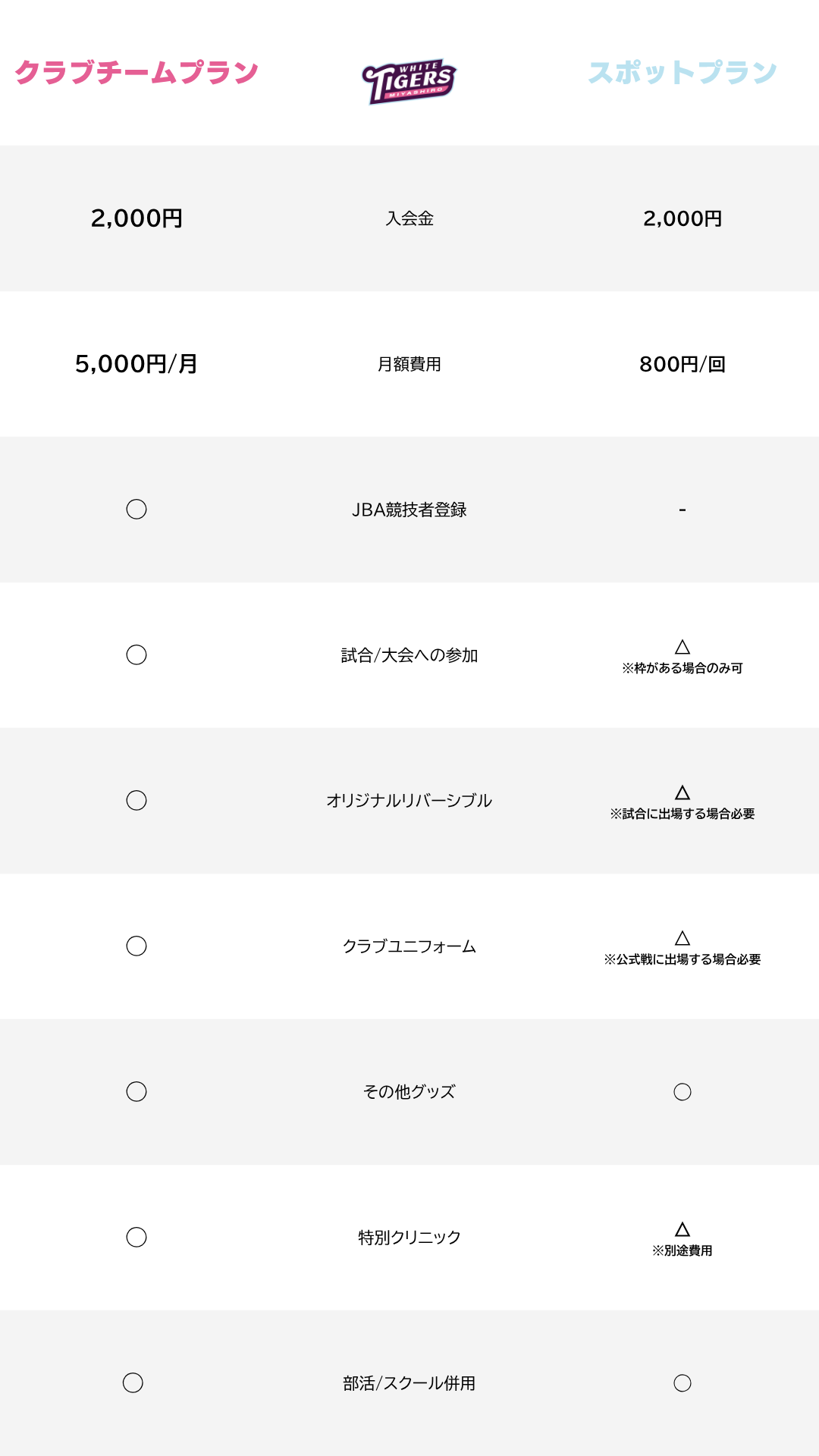 JBA選手登録料: ¥2,000/年